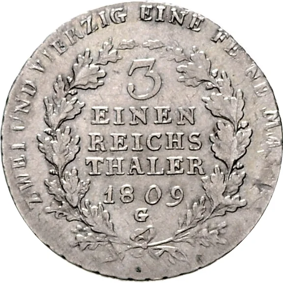 Oak wreath with 6-line inscription (date, denomination, mintmark). Legend surrounds.