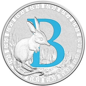 The clever Bilby playfully interacts with the letter B on this brilliant coin.